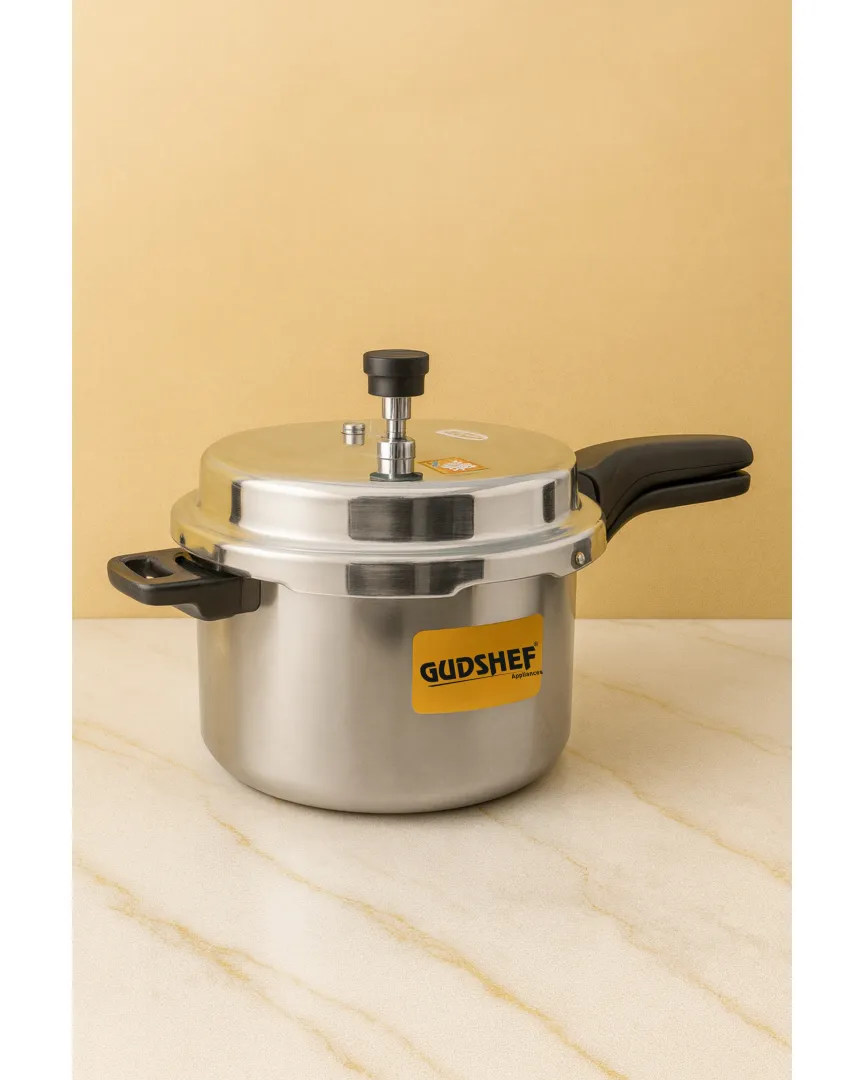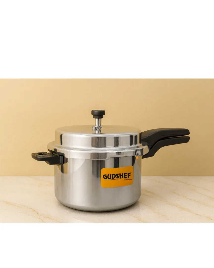 The GUDSHEF 7.5 Litre Pressure Cooker – Trendy DLX is designed for large families and bulk cooking. Built with a double safety valve system, it ensures maximum safety while delivering fast and efficient cooking performance. Its sturdy construction and modern design make it ideal for everyday heavy-duty kitchen use. Backed by a 5-year warranty, the GUDSHEF Trendy DLX pressure cooker offers durability, safety, and long-lasting reliability for modern kitchens.