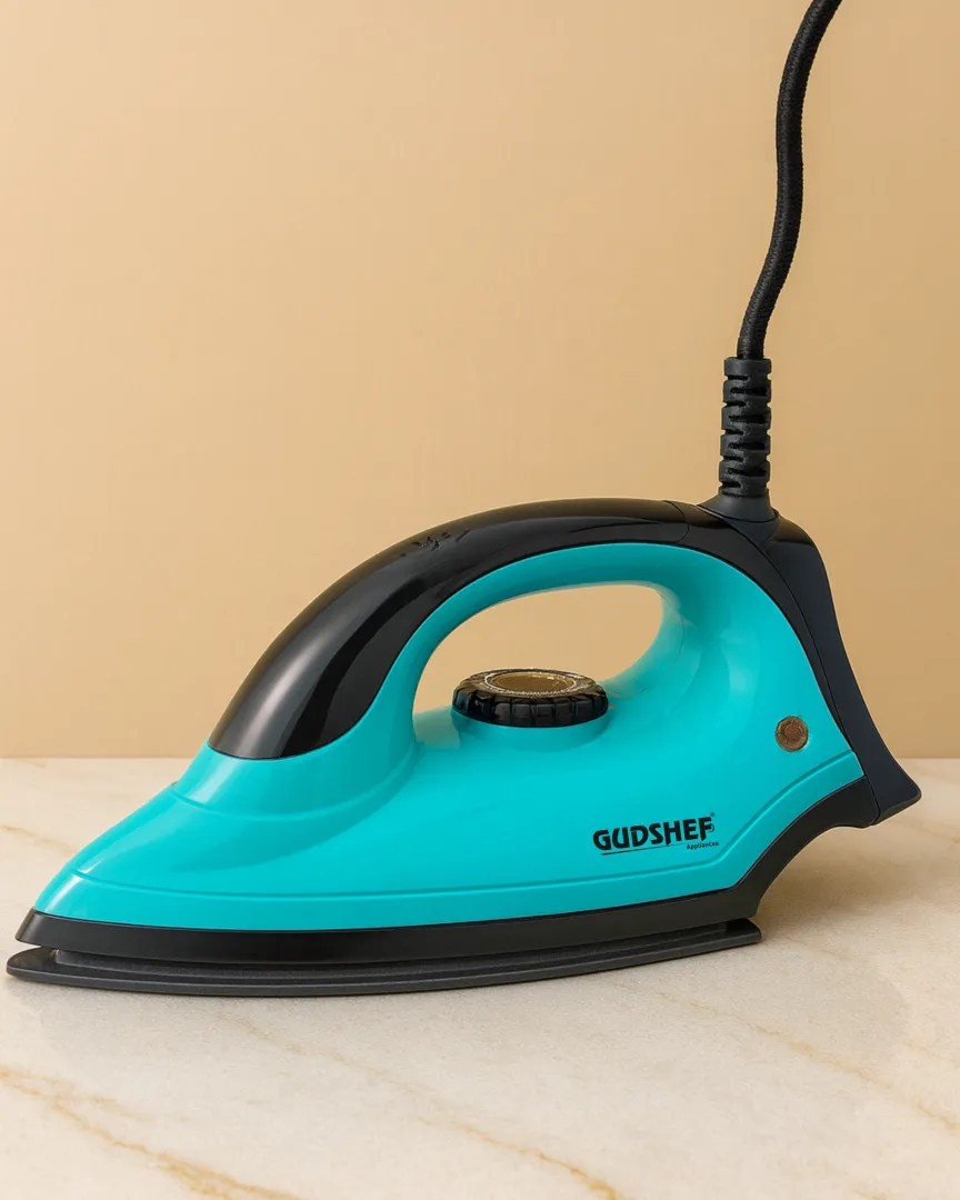 The GUDSHEF Prime-Dry Iron (1000 Watt) is designed for fast heating and efficient ironing performance. Powered by a 1000W heating element, it delivers even heat distribution for smooth and wrinkle-free results on all fabric types. Its durable soleplate glides effortlessly, making daily ironing quick and comfortable. Lightweight and ergonomically designed, the Prime-Dry Iron ensures easy handling and reliable operation. Backed by a 2-year warranty, it offers safety, durability, and long-lasting performance—making it an ideal choice for modern homes.