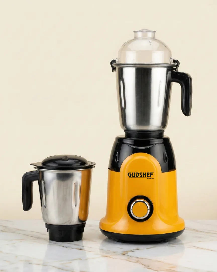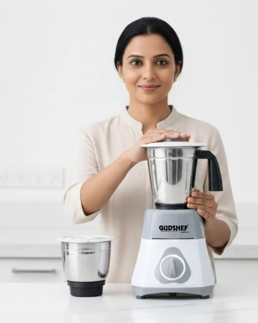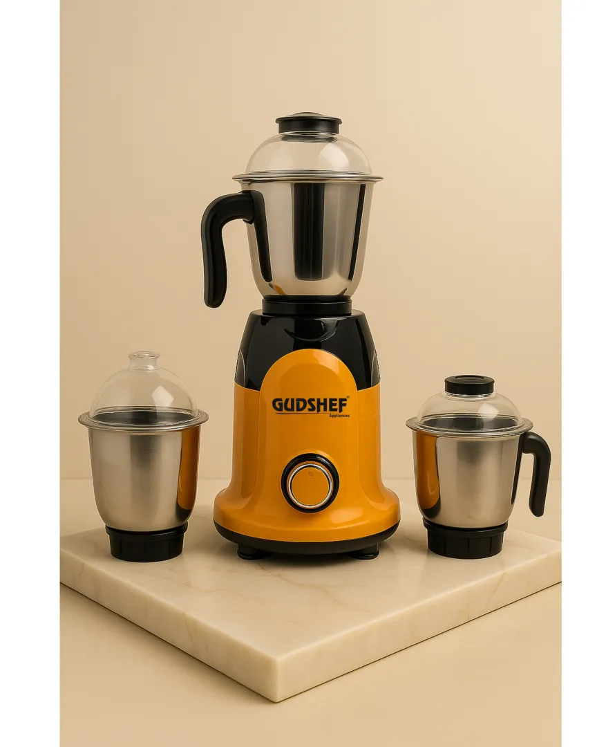 The GUDSHEF Magic 3-Jar Mixer Grinder (600W) is designed to handle everyday kitchen tasks with ease and efficiency. Powered by a 600-watt motor, it delivers reliable performance for grinding, blending, and mixing daily ingredients. The three multi-purpose jars are ideal for wet grinding, dry grinding, and chutney preparation. Built with durable materials and sharp stainless-steel blades, this mixer grinder ensures smooth results and long-lasting performance. Backed by a 2-year warranty, the GUDSHEF Magic mixer grinder is a practical and dependable choice for modern kitchens.