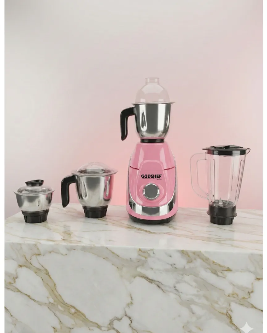 The GUDSHEF Queen 4-Jar Mixer Grinder (1 HP) is designed for powerful and efficient kitchen performance. Equipped with a high-efficiency 1 HP motor, it ensures smooth grinding, blending, and mixing for all cooking needs, while the four multi-purpose jars add convenience and versatility. Built with durable materials and sharp stainless-steel blades, and backed by a 3-year warranty, the GUDSHEF Queen mixer grinder is a dependable choice for modern kitchens.